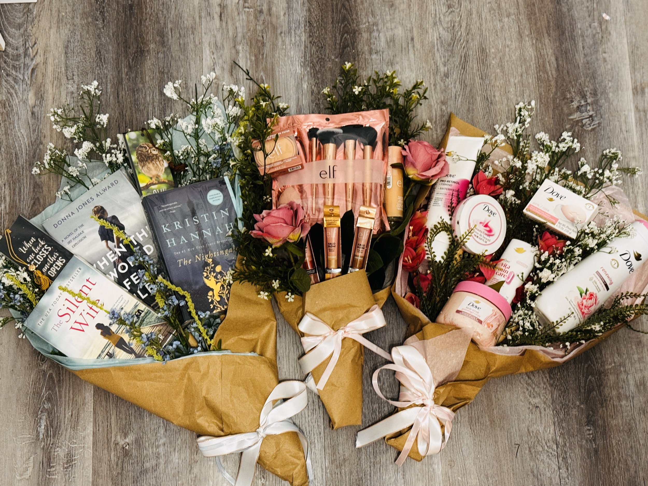 Gift bouquets are just that! A bouquet made out of gifts! Dressed up in real or fake florals for design & appeal! Have something you want to gift in a creative way? Gift bouquets are the perfect mixture of traditional and unique!