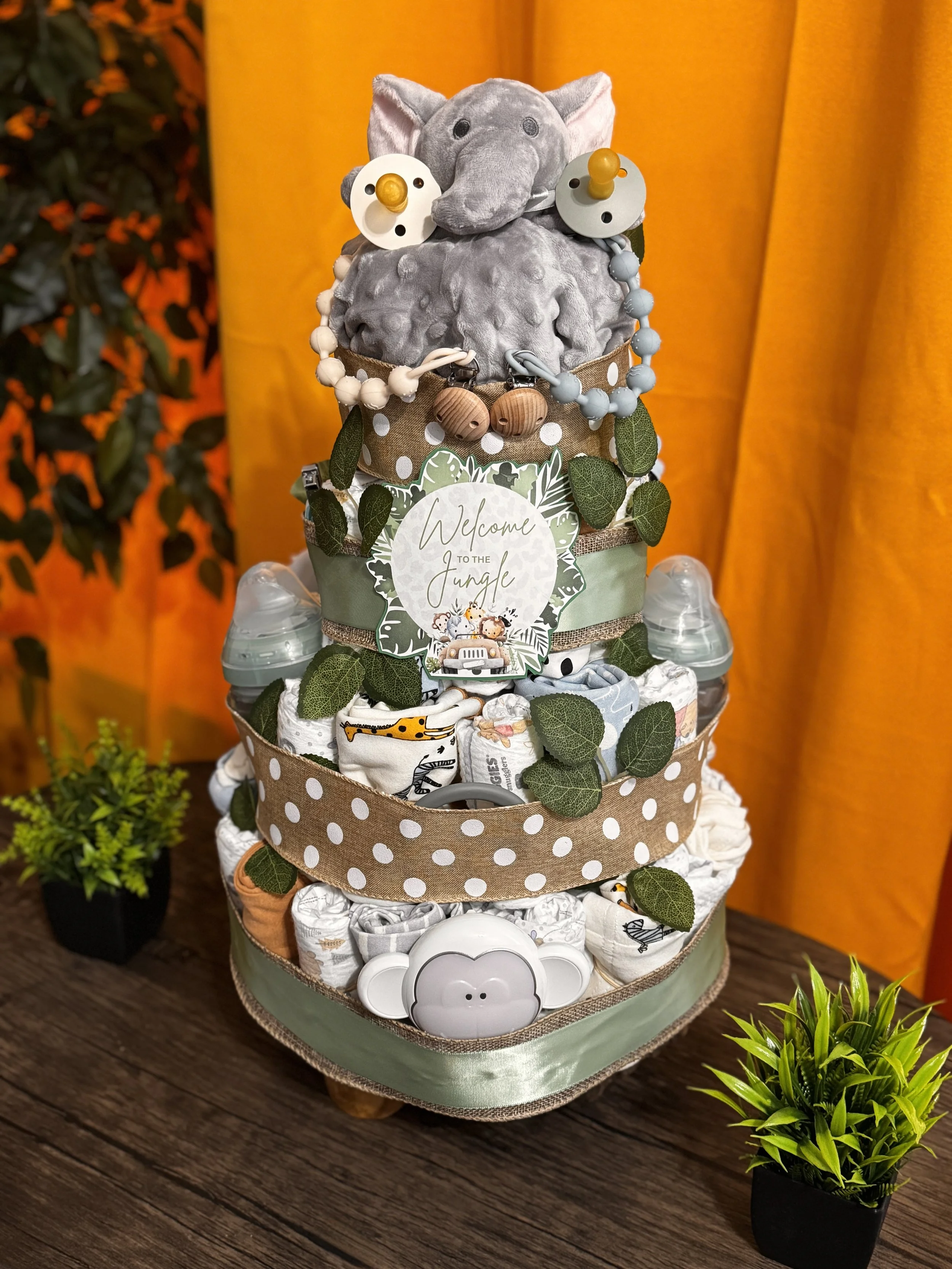 Diaper cakes are made completely out of diapers and other baby items! Whether you want something simple or extravagant, we can make one to meet your needs and budget!